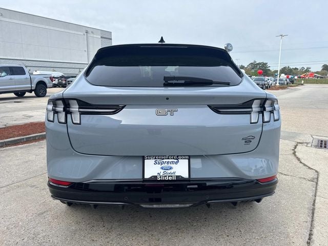 Supreme Ford of Slidell is proud to offer this beautiful-looking 2024 Ford Mustang Mach-E GT in Gray Metallic Beautifully equipped with Equipment Group 400A, 10 Speakers, 4-Wheel Disc Brakes, ABS brakes, Adaptive suspension, Air Conditioning, Alloy wheels, AM/FM radio: SiriusXM with 360L, AM/FM Stereo, Apple CarPlay/Android Auto, Auto High-beam Headlights, Auto-dimming Rear-View mirror, Automatic temperature control, Axle Ratio: 9.791, Brake assist, Bumpers: body-color, Compass, Delay-off headlights, Driver door bin, Driver vanity mirror, Dual front impact airbags, Dual front side impact airbags, Electronic Stability Control, Emergency communication system: 911 Assist, Exterior Parking Camera Rear, Four wheel independent suspension, Front anti-roll bar, Front Bucket Seats, Front Center Armrest, Front dual zone A/C, Front reading lights, Fully automatic headlights, Garage door transmitter, Heated door mirrors, Heated front seats, Heated Perforated ActiveX Performance Seats, Heated steering wheel, Hood & Decklid Stripe/Door Graphics Delete, Illuminated entry, Knee airbag, Low tire pressure warning, Memory seat, Mobile Power Cord (120V/240V), Navigation system: Connected Navigation, Occupant sensing airbag, Outside temperature display, Overhead airbag, Overhead console, Panic alarm, Panoramic Fixed-Glass Roof, Passenger door bin, Passenger vanity mirror, Power door mirrors, Power driver seat, Power Liftgate, Power passenger seat, Power steering, Power windows, Radio data system, Rain sensing wipers, Rear anti-roll bar, Rear seat center armrest, Rear side impact airbag, Rear window defroster, Rear window wiper, Remote keyless entry, Security system, SiriusXM Radio w/360L, Speed control, Speed-sensing steering, Speed-Sensitive Wipers, Split folding rear seat, Spoiler, Steering wheel mounted audio controls, SYNC 4A w/Enhanced Voice Recognition, Telescoping steering wheel, Tilt steering wheel, Traction control, Trip computer, Turn signal indicator mirrors, Variably intermittent wipers, and Wheels: 20 Machined-Face Aluminum!