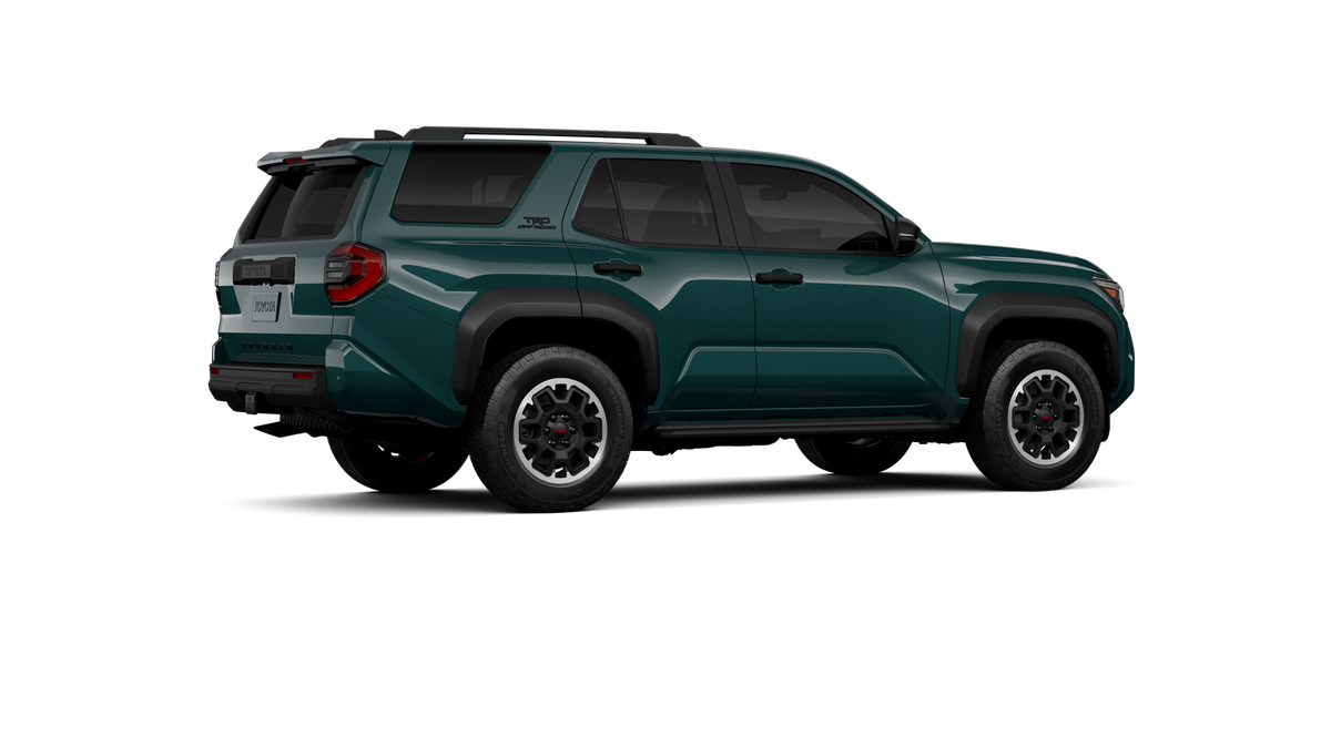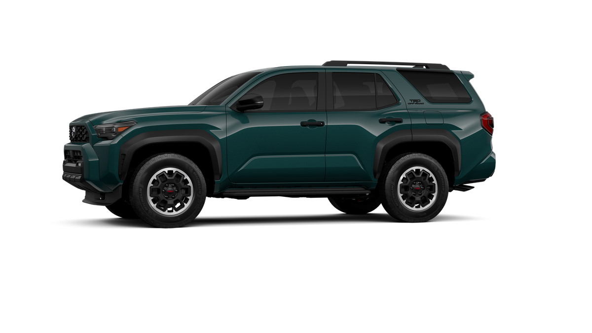 - Black honeycomb-style grille, mirror caps, door handles and overfenders; color-keyed rear spoiler; black "TRD OFF ROAD" and "4RUNNER" badges