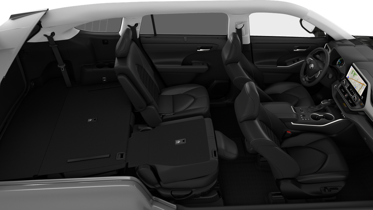 - 7-passenger seating with second-row fold-down captain's chairs and fold-down inboard armrests, adjustable headrests and two cup holders mounted on the floor; and 60/40 split, fold-flat third-row seats with sliding headrests and recline function