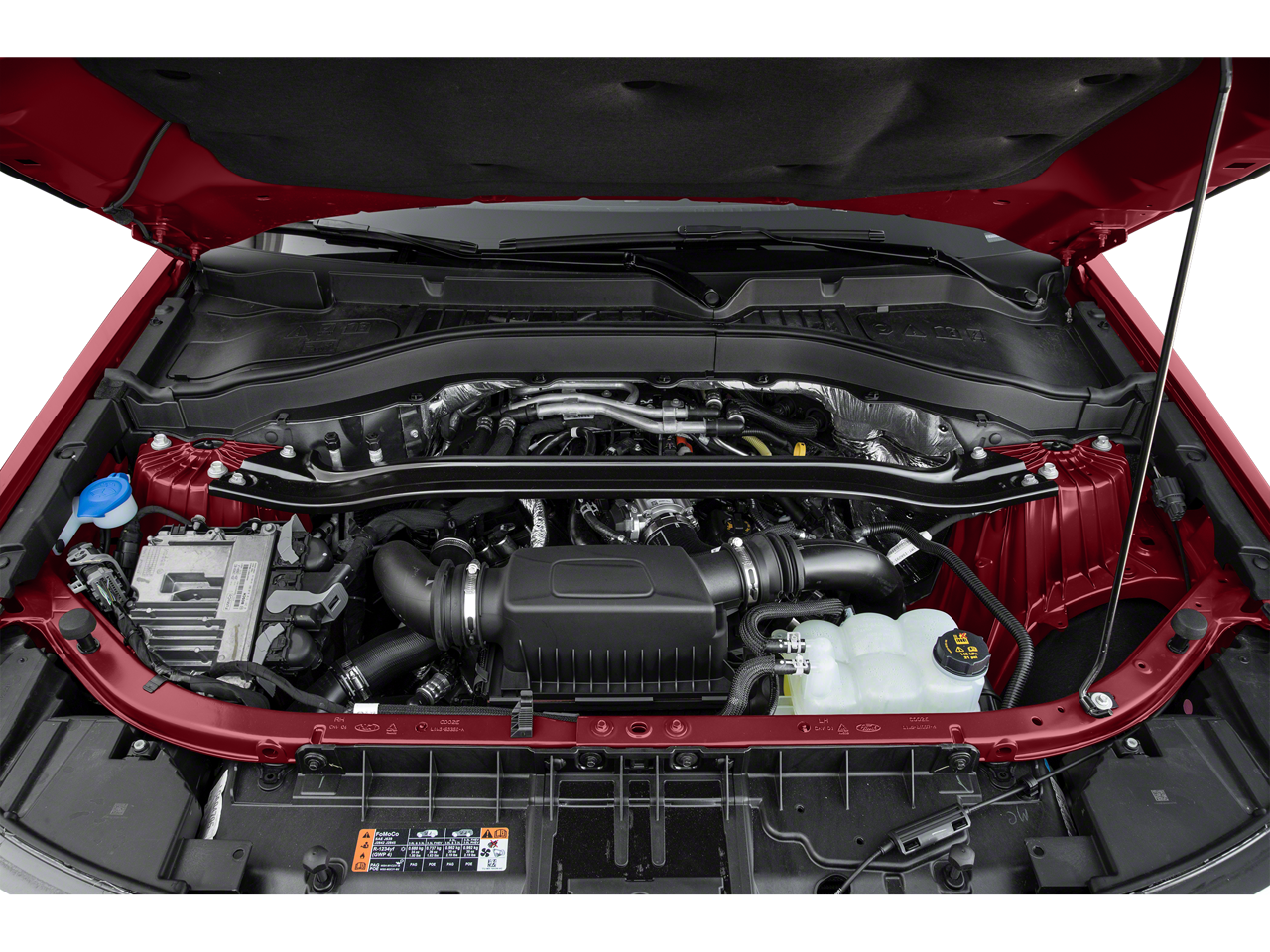 Stepping inside, you'll be greeted by a cabin that seamlessly blends style and functionality. The SYNC 3 Communications & Entertainment System, complete with Apple CarPlay and Android Auto integration, keeps you connected and entertained on every journey. Heated and ventilated front seats, a heated steering wheel, and a panoramic twin-panel moonroof elevate your comfort to new heights, while the performance-inspired sport steering wheel and paddle shifters allow you to take full control of the driving experience.